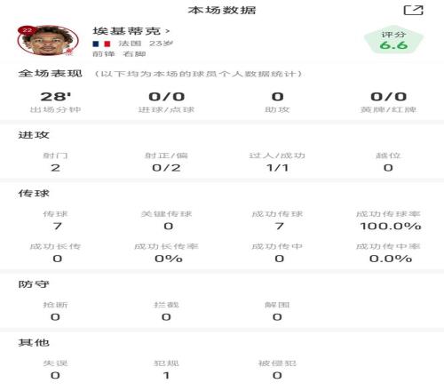埃基蒂克战曼联全场数据: