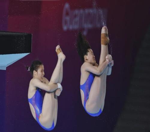 全红婵/王伟莹在比赛中。南都N视频记者 黎湛均 摄