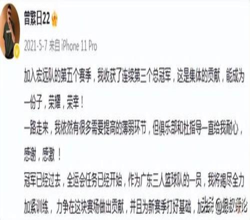 根据此前的媒体报道,同曦队官宣曾繁日离队,并放弃收取培养费、让他成为真正意义上的自由球员。