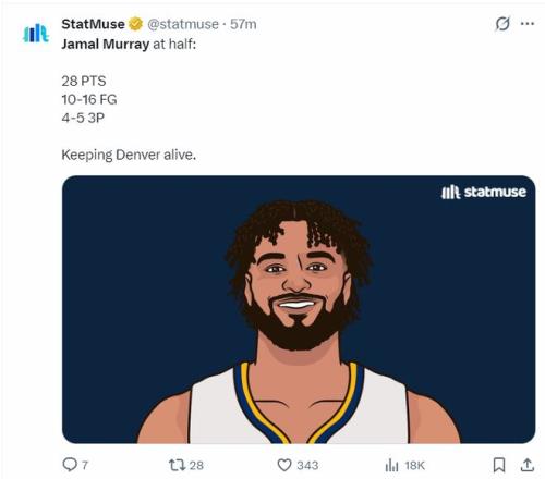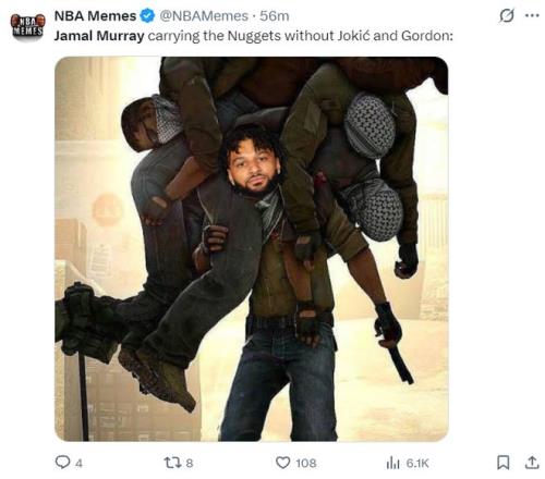 美媒NBA Memes,穆雷一人扛起了没有戈登、约基奇等人的掘金。