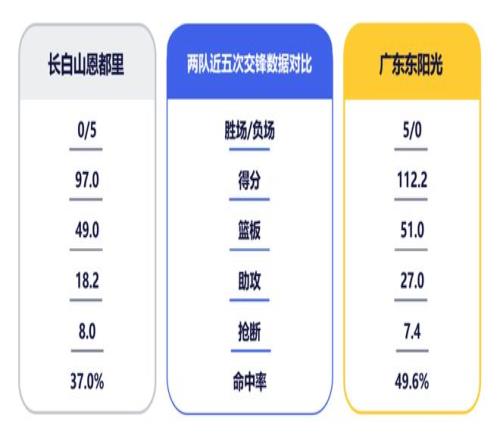 1月21日,CBA常规赛第18轮,广东东阳光将在客场与长白山恩都里男篮交手。上赛季2次交锋,华南虎保持全胜。